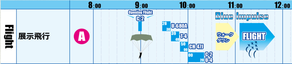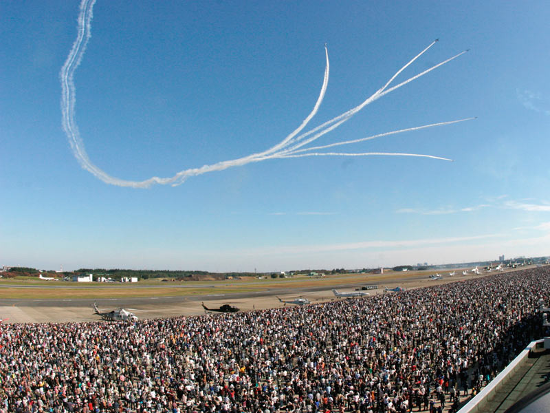 目玉ブルーインパルス展示飛行、航空機地上展示、音楽隊演奏など