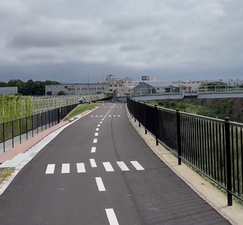 また、千里川の空港側も、砂利道&草むらから、このようにきれいな舗装とベンチになっています。