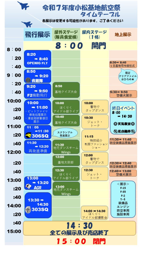 - 会場:航空自衛隊 小松基地(石川県小松市向本折町戊267)